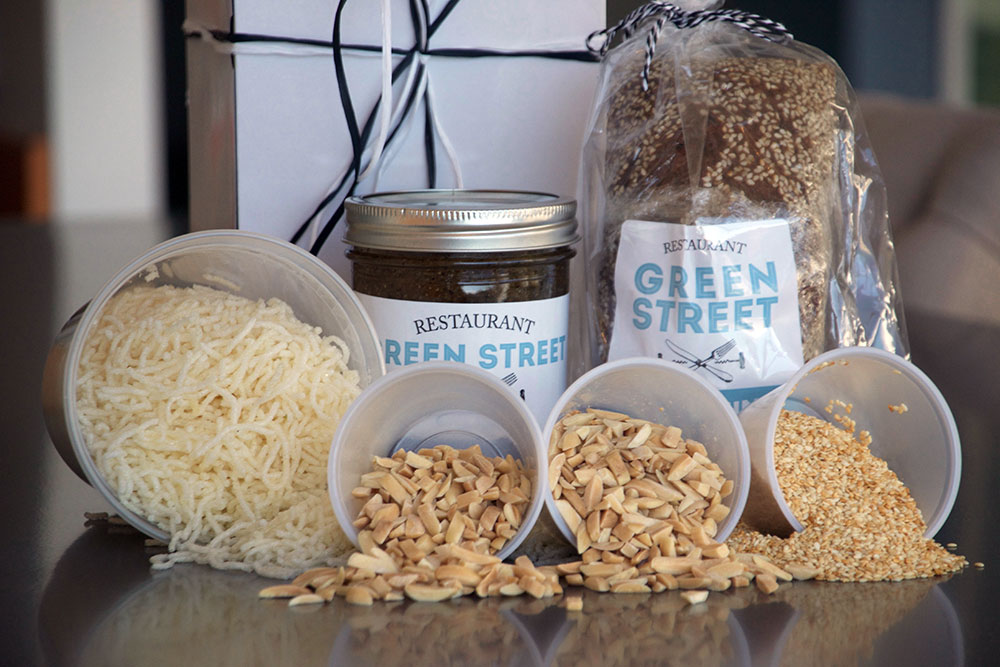 All the ingredients to make four Dianne salads (except the lettuce and chicken) in a beautiful box suitable for a gift. The Dianne Kit also includes a loaf of Green Street Zucchini Bread.